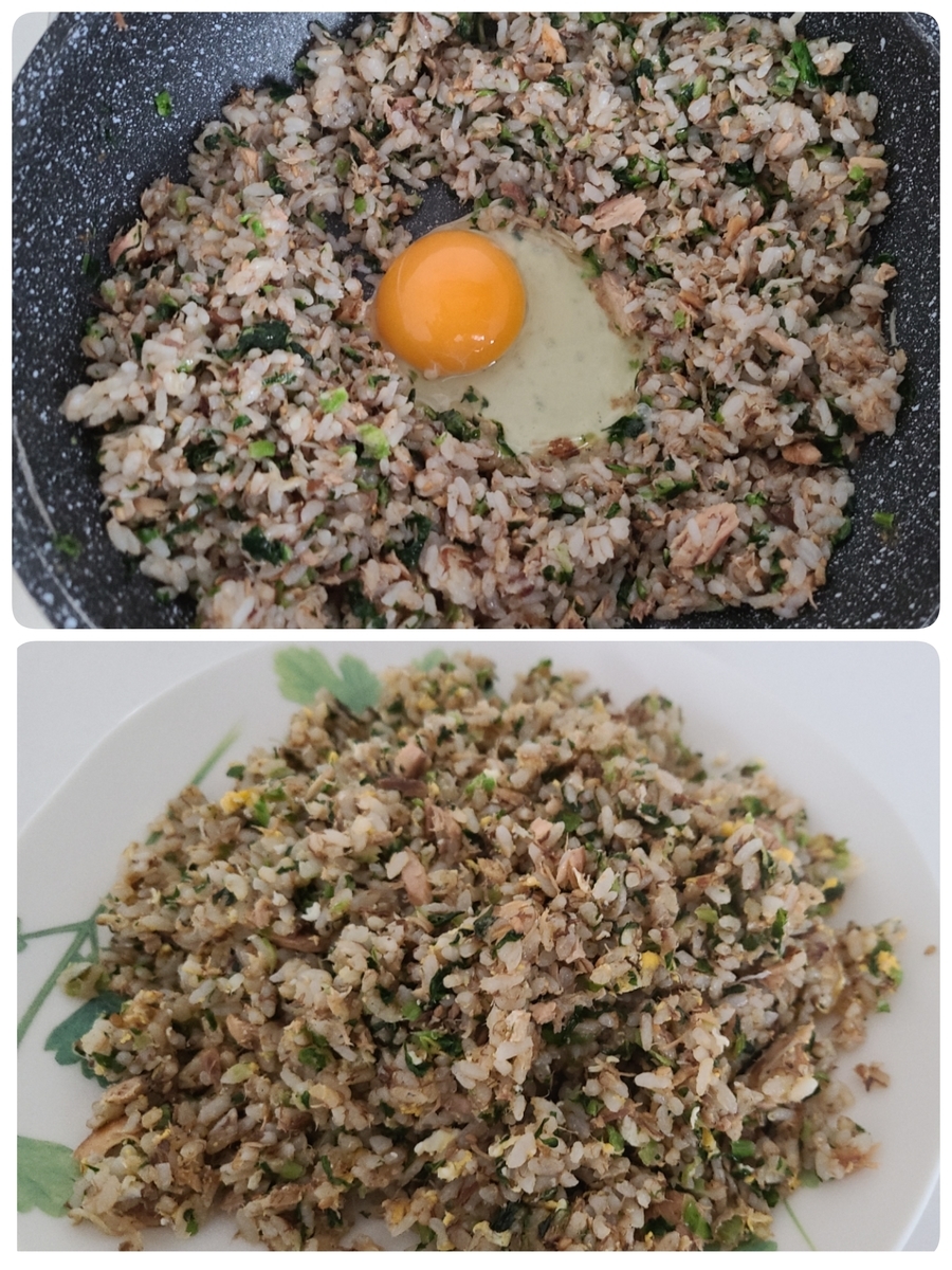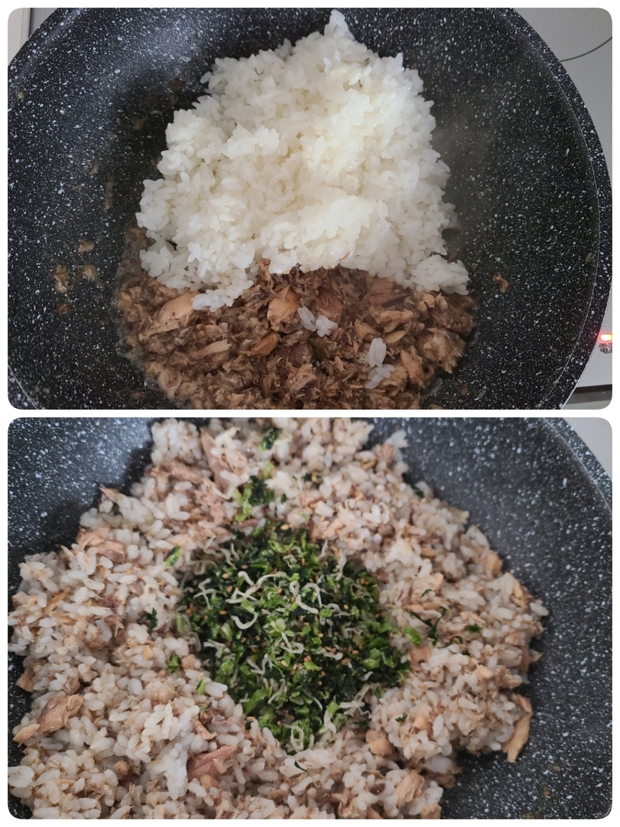 サバ缶と野沢菜ちりめんで炒飯を作りました!